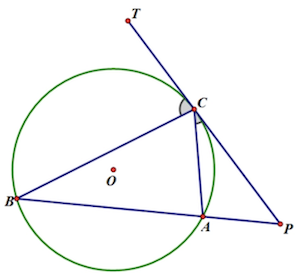 ∠TCB(弦切角) = ∠BAC(圆周角)