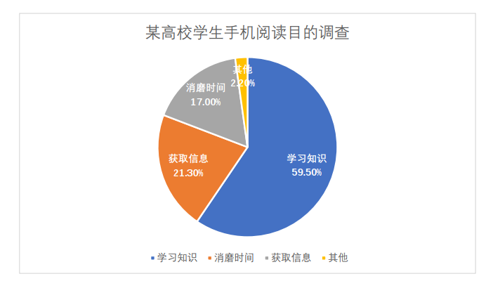 As is numerically ilustrated in the statistics (about students' purpose of using mobilephone), the percentage of those who want to pursue knowledge is 59.5%,21.3% of the students use mobilephone for entertainment and time-killing.And the percentage of those who utilize their phone to acquire information is 17%. From my perspective, the above figures reveal a currently prevailing tendency among contemporary society.