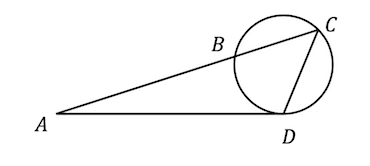 16. 如图,AD 与圆相切于点 D,AC 与圆相交于点 B,则能确定 △ABD 与 △BDC 的面积之比.