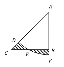 4. 如图,△ABC 一个等腰直角三角形,以 A 为圆心的圆弧交 AC 于 D,交 BC 于 E,交 AB 的延长线于 F,若曲边三角形 CDE 与 BEF 的面积相等,则 =( ).